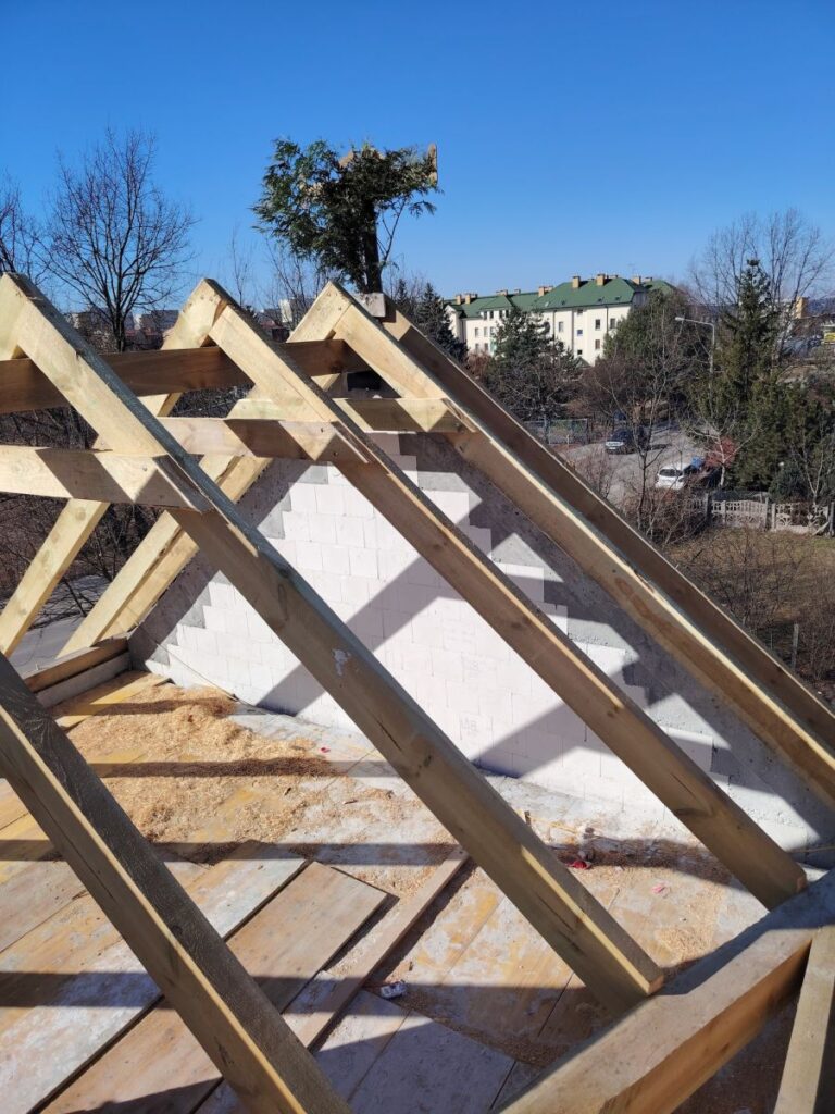 Obecnie pracujemy na dachu, żeby jak najszybciej zamknąć budynki w stanie surowym zamkniętym.