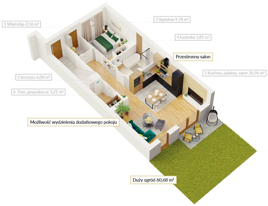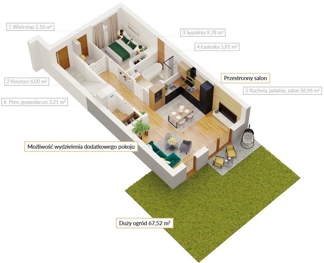 | E1 | 1 | 0 | 3 | 45.21m2 | 38.93m2 | Ogród | Sprzedane |