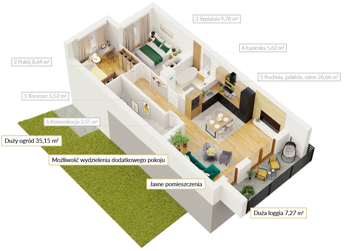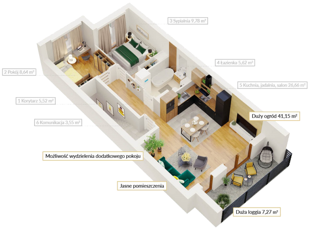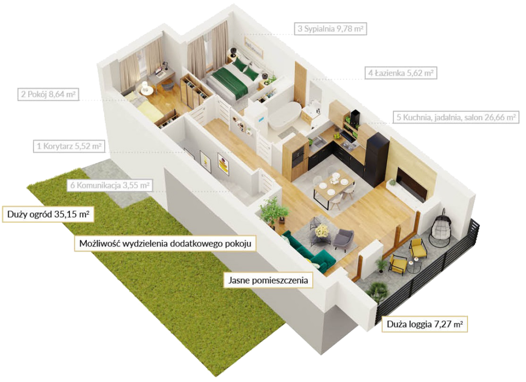Drugi etap inwestycji Nowa Ługowa to realizacja 16 przestronnych lokali, zaprojektowanych z myślą o komforcie i funkcjonalności. Wśród nich znajdą się mieszkania z dostępem do prywatnych ogródków na parterze oraz te z balkonami na wyższych kondygnacjach, oferując nie tylko przestrzeń mieszkalną, ale i możliwość relaksu na świeżym powietrzu.