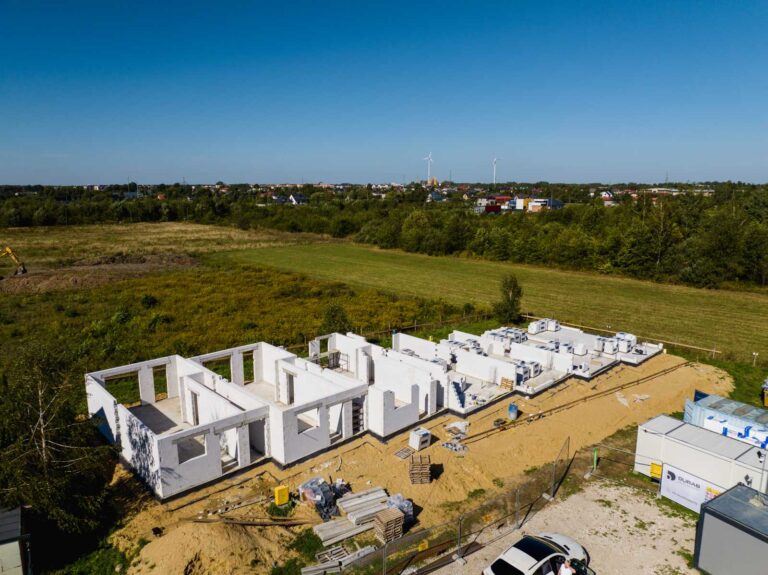 Budynki zostały wykonane z wysokiej jakości materiałów – posadowiono je na płytach fundamentowych oraz zastosowano stropy żelbetowe.