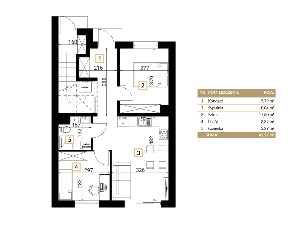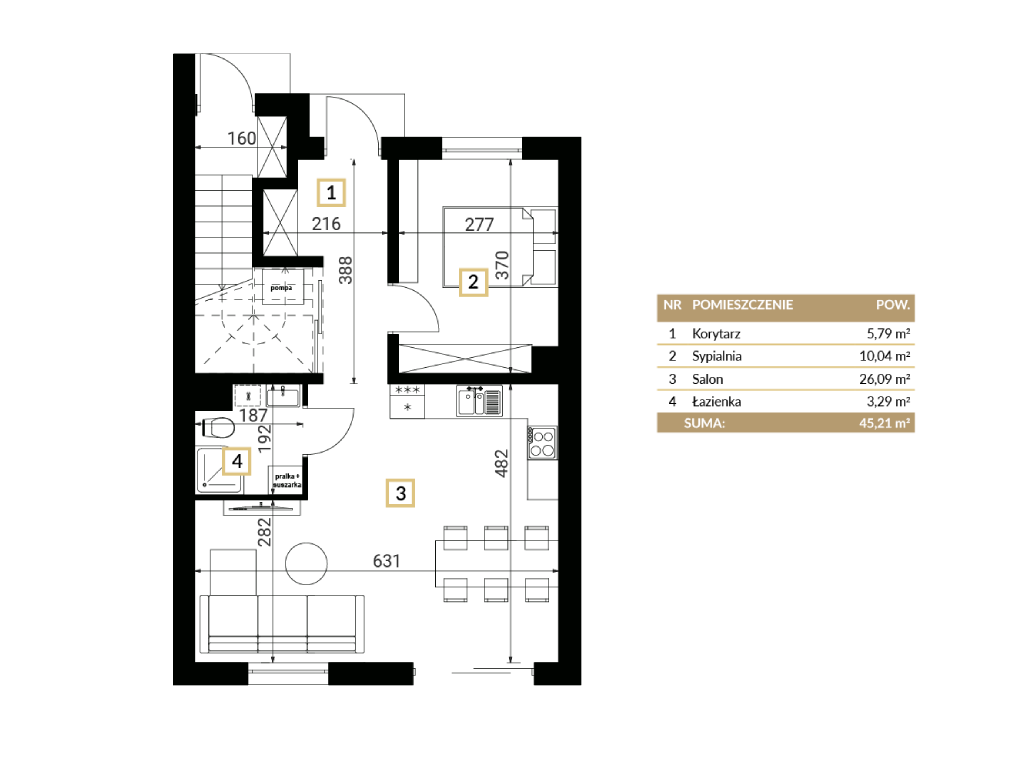 | F1 | 1 | 0 | 3 | 45.21m2 | 38.93m2 | Ogród | Sprzedane |