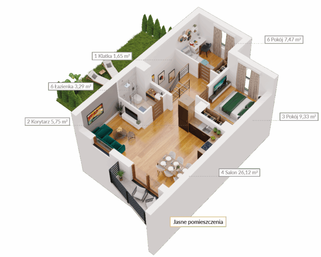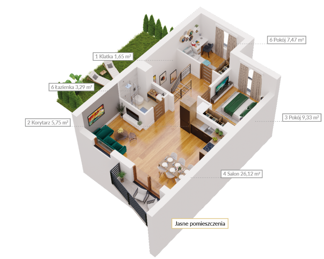 | H2 | 6 | 1 | 3 | 53.61m2 | 34.52m2 | Ogród i balkon | Sprzedane |